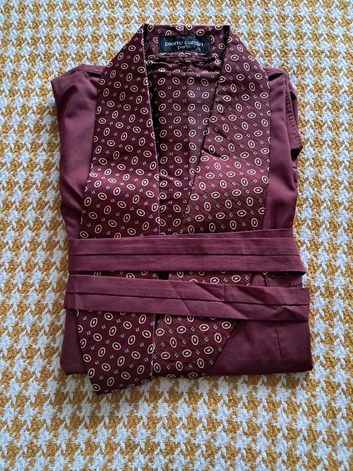 Bordo renkli, uzun kollu, desenli bohem tarzda kadın sabahlık. Midi boy ve regular fit, belinde kuşak bulunur. yenidir hiç kullanılmadı erkek için röpteşambır. boyu 110 santimdir
