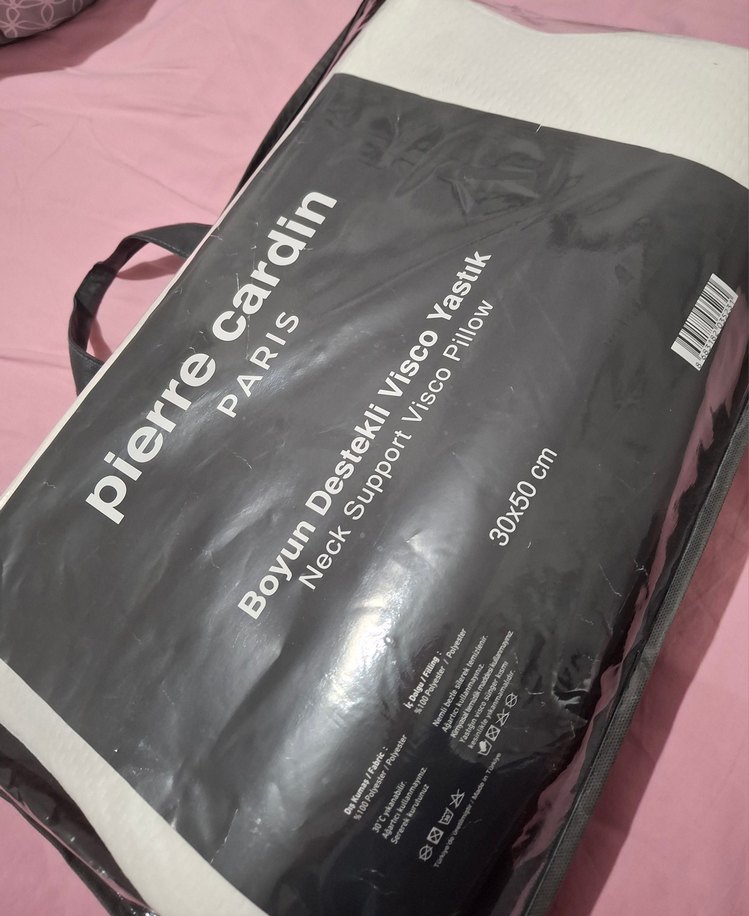Pierre Cardin markalı, boyun destekli visco köpük yastık, 30x50 cm ölçüsünde, rahat boyun desteği sağlar. Siyah ambalajda baskılı marka yazısı bulunur. ️