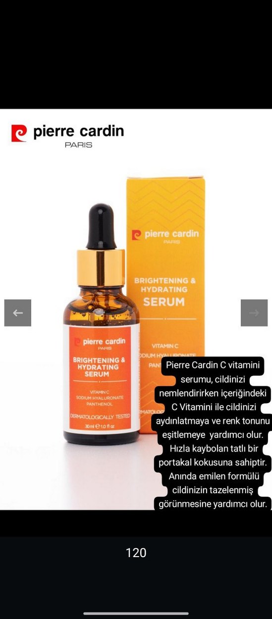 Pierre Cardin C vitamini serumu cildinizi nemlendirirken aydınlatmaya ve renk tonunu eşitlemeye yardımcı olur. Hızla emilen formülü tatlı portakal kokusuna sahiptir ve cildinizi anında tazeler.