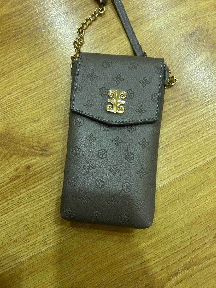 Gri deri çapraz çanta, baskılı desen ve zincir detaya sahip. Minimalist tasarımı günlük sokak tarzına uygundur. Telefon çantası veya cüzdan olarakta kullanılabilir