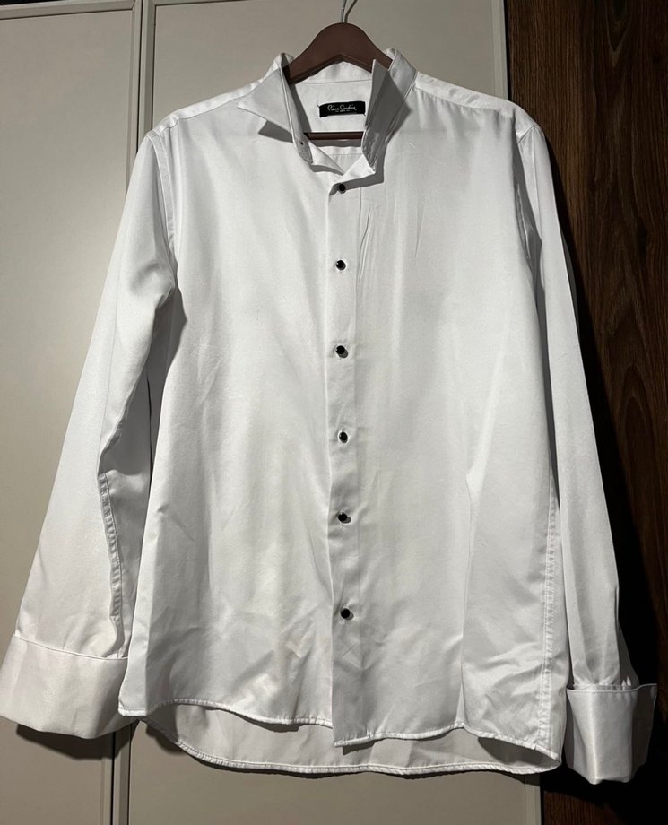 Düğmeli, yakalı ve uzun kollu bu beyaz erkek gömlek, regular fit ve normal boydadır. Sentetik kumaştan üretilmiş olup, ofis ve günlük kullanıma uygundur.