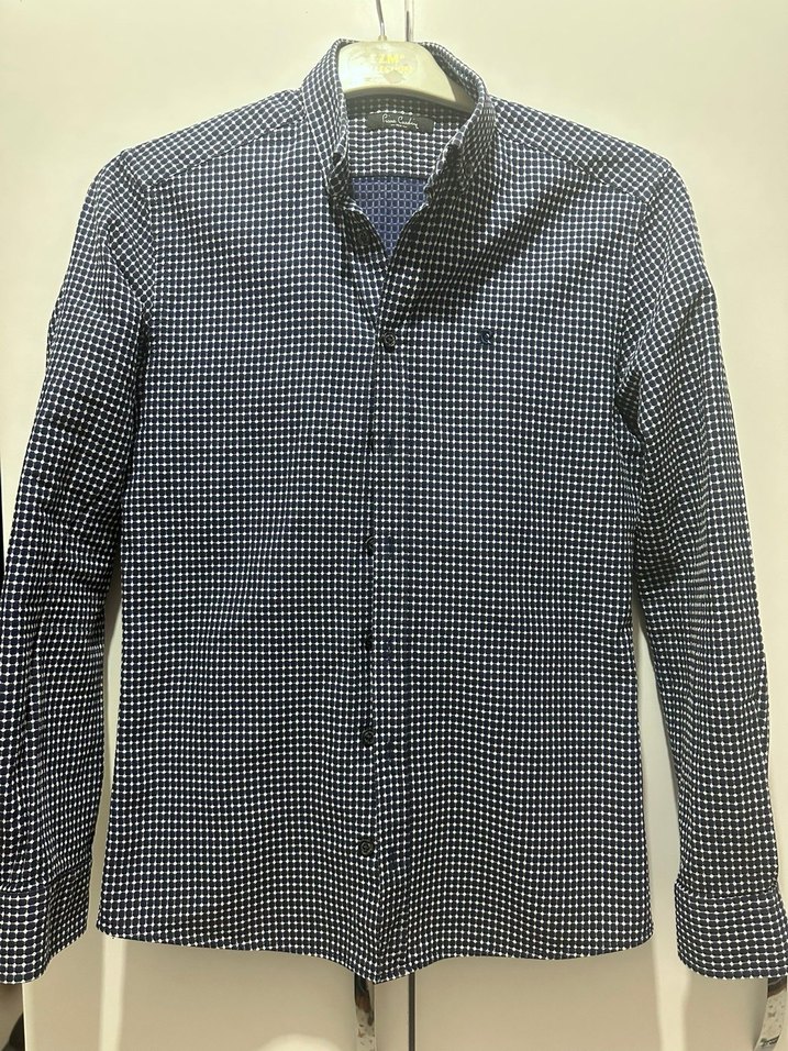 Düğmeli, uzun kollu erkek gömleği, kesik yaka ve normal boyda. Sentetik kumaştan, gri renkte, rahat kesim. Ofis ve sokak stiline uygun. kusuru yoktur.