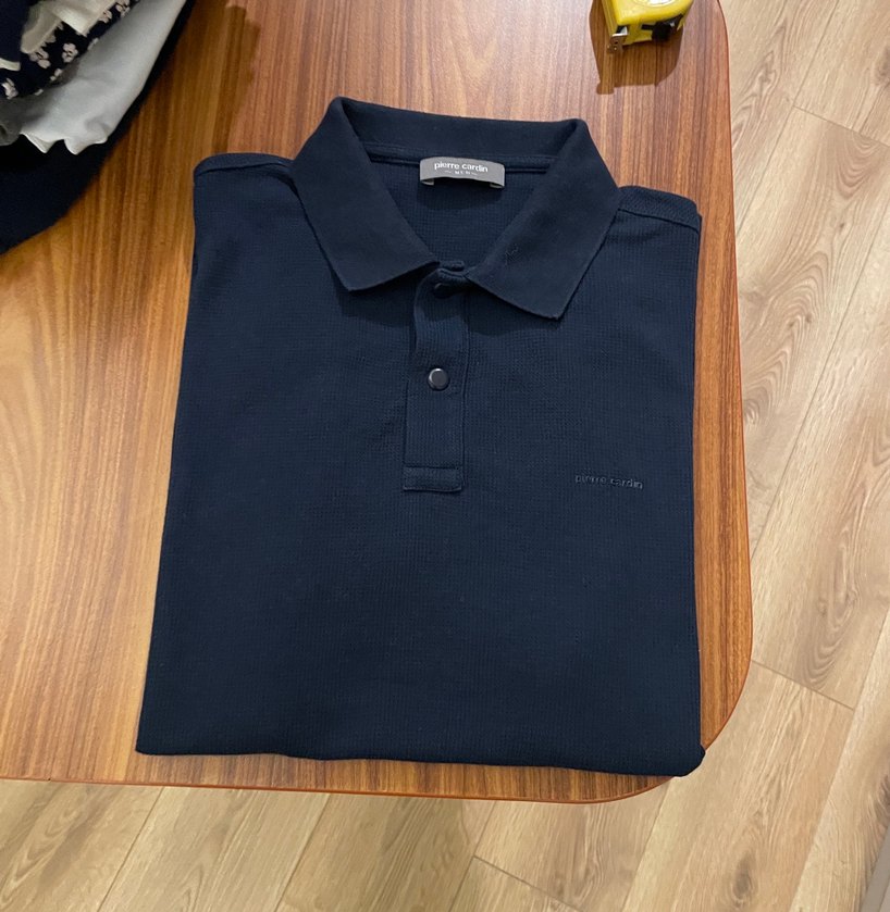 Lacivert renkte, düğmeli ve kısa kollu polo tişört. Kolaltından kolaltına en ölçüsü 50, boyu 70cm . Sorunu yoktur sayılı kullanıldı %100 pamukludur regular fit kesime sahip ve günlük kullanıma uygun