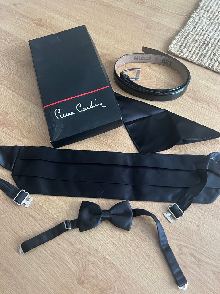 Pierre Cardin erkek papyon seti, ayarlanabilir bantlı siyah desenli tasarımıyla şık ve gotik tarz için uygun.