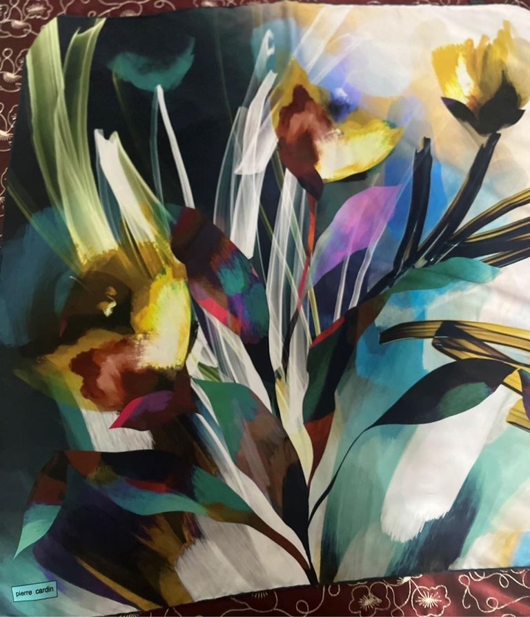 Ürün orijinaldir. Temiz kullanılmıştır. İpek değildir. Köşesinde polyester yazmaktadır.