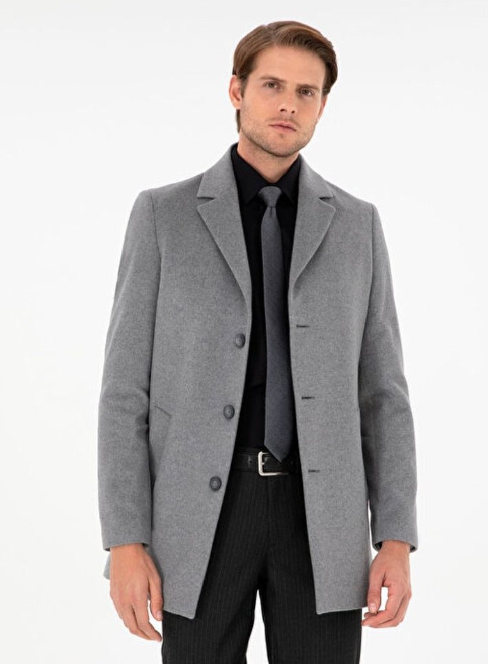 Pierre Cardin Gri Erkek Ekstra Slim Düz Kaban Shadi Kaban Kase