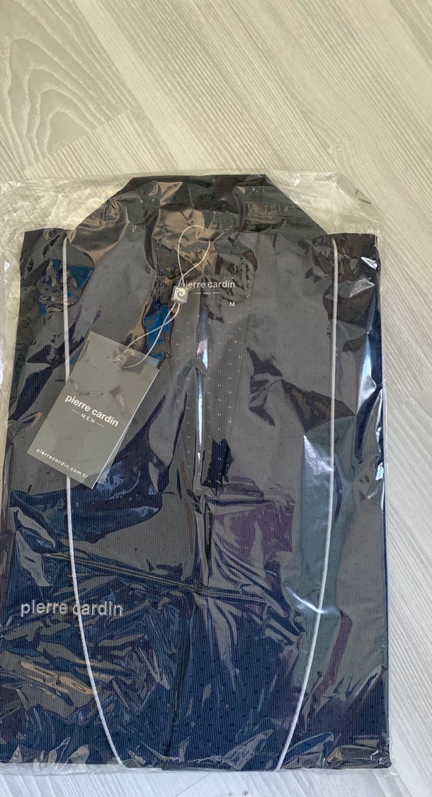 Pierre Cardin erkek pijama takımı, gri baskılı kumaş, yakalı ve uzun kollu. Düzenli kesim, fermuarlı ön, normcore ve Paris tarzı. ️