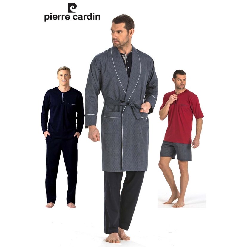 Pierre Cardin gri erkek pijama takımı, kemerli sabahlık, uzun kollu ve bisiklet yaka ile rahat kesime sahip. Desensiz, midi uzunlukta modern tarzda. Lacivert pijama takımı uzun kollu ve uzun alttır. Görseldeki katlanma izidir. Yıkanınca geçecektir. Bordo renk pijama takımı şortludur. İlave olarak Robdöşambr Sabahlıkta bulunmaktadır. İlk görsel setin tüm görselidir. Set L bedendir. Hiç kullanılmadı. Tertemizdir. Damat bohçasına koyulabilir. Penye kumaştır. #pierrecardin #damatbohçası #pijamaseti #robdöşambr #damat #pijamatakımı #dsdamat #set #bohça #nişanbohçası