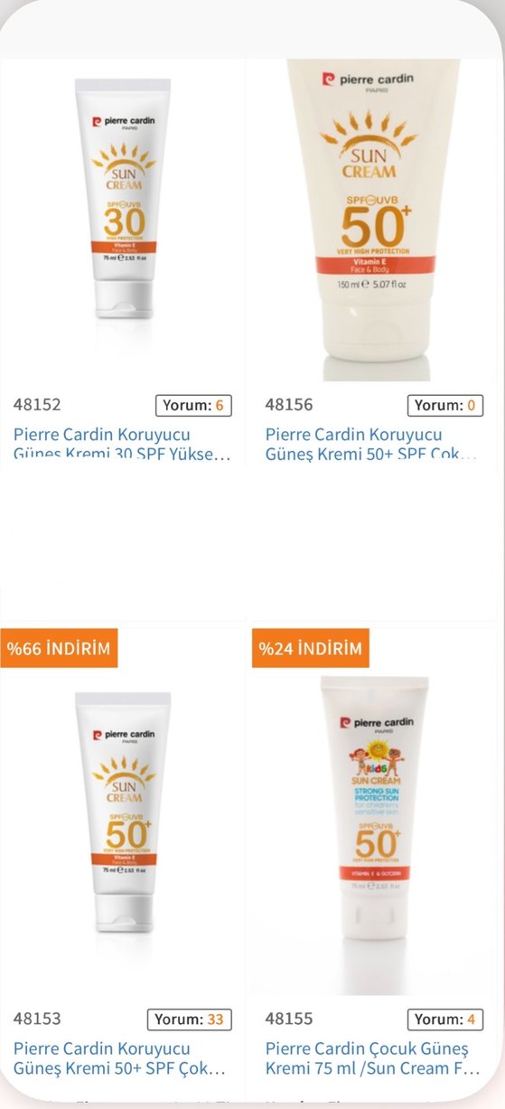 Pierre Cardin güneş kremleri SPF 30 ve 50+ koruma sağlar, Vitamin E ile zenginleştirilmiştir. Yetişkin ve çocuklar için farklı boy ve formüllerde mevcuttur. ☀️