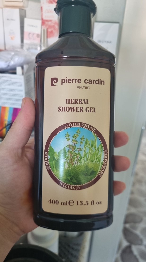 Pierre Cardin Herbal Duş Jeli, yabani kekik özlü, 400 ml şişede ferahlatıcı ve doğal temizlik sağlar.