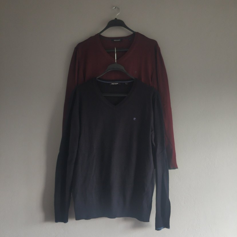 Pierre Cardin marka, orijinal ürün, makinede yıkandı fakat hiç giyilmedi, tertemiz duruyor, ikili olarak satıyorum, bordo ve siyah renk, yumuşak kumaş, v yaka model, S beden, kol kenarlarında detaylar var, gömlek üstüne giyilir, her ortam için uygundur, eminim Türk erkeklerine çok yakışacaktır, şimdiden alıcısına hayırlı olsun.