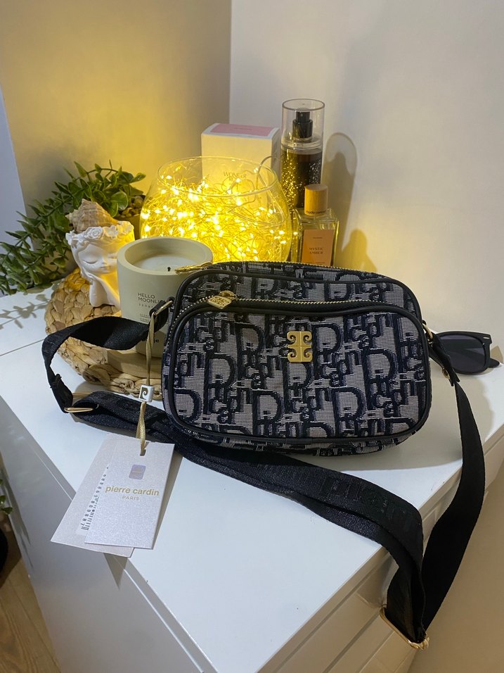 Pierre Cardin marka, siyah baskılı, sentetik kumaştan yapılmış, tokalı kadın çantası. Günlük kullanım için uygun, trend sokak stiliyle uyumlu. Yeni hiç kullanılmadı etiketlidir.❤️