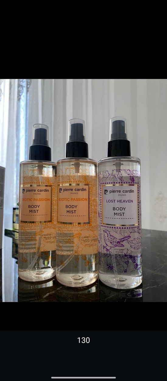 Pierre Cardin markalı Exotic Passion ve Lost Heaven kokulu kadın vücut spreyi mistleri, hafif ve ferahlatıcı koku sunar.