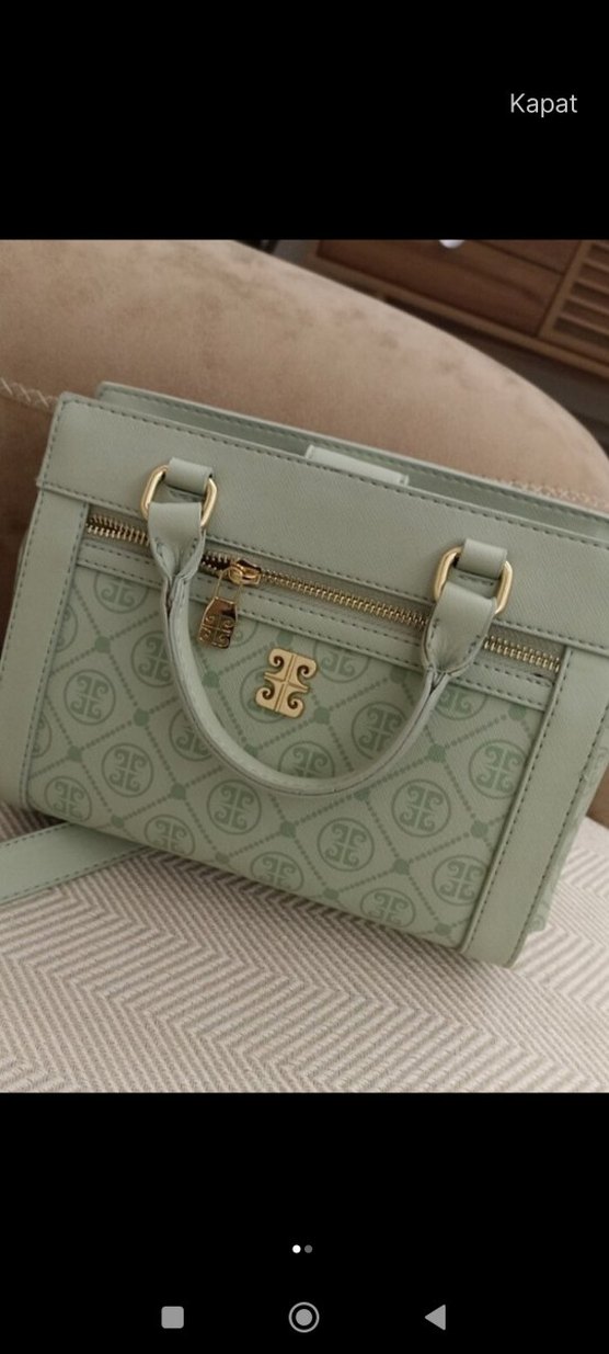 Modern klasik tarzda, baskılı desenli ve fermuarlı cepli bej deri kadın çantası, Paris esintili günlük kullanım için uygundur. 5 kez kullanıldı en fazla.