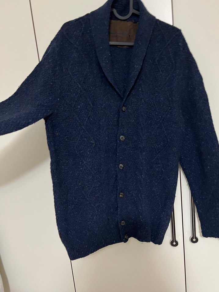 Pierre Cardin marka, Lacivert renkte, örgü yünden yapılmış, düğme detaylı, şal yaka ve uzun kollu, bol kesim erkek hırkası. Günlük kullanıma uygundur. Xl ve L bedene uygundur.
