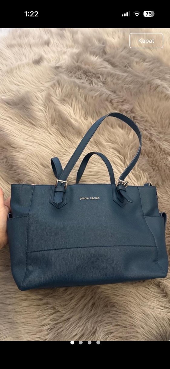 Pierre Cardin markalı, mavi deri çanta. Sıfır ürün. Hiç kullanılmadı.