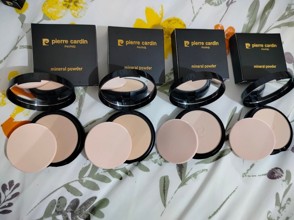 Pierre Cardin mineral pudra, açık bej renkte, pürüzsüz bir bitiş sağlar. Kompakt kutu ve aplikatör süngerle birlikte.