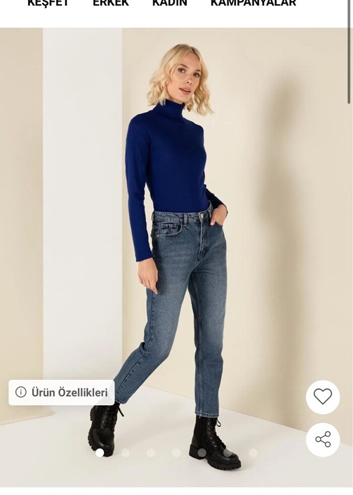 Tadilatsız, orjinal paçalı, temiz, yeni mom jean pantolon. Sert bir kumaşı var, bana dar geliyor.