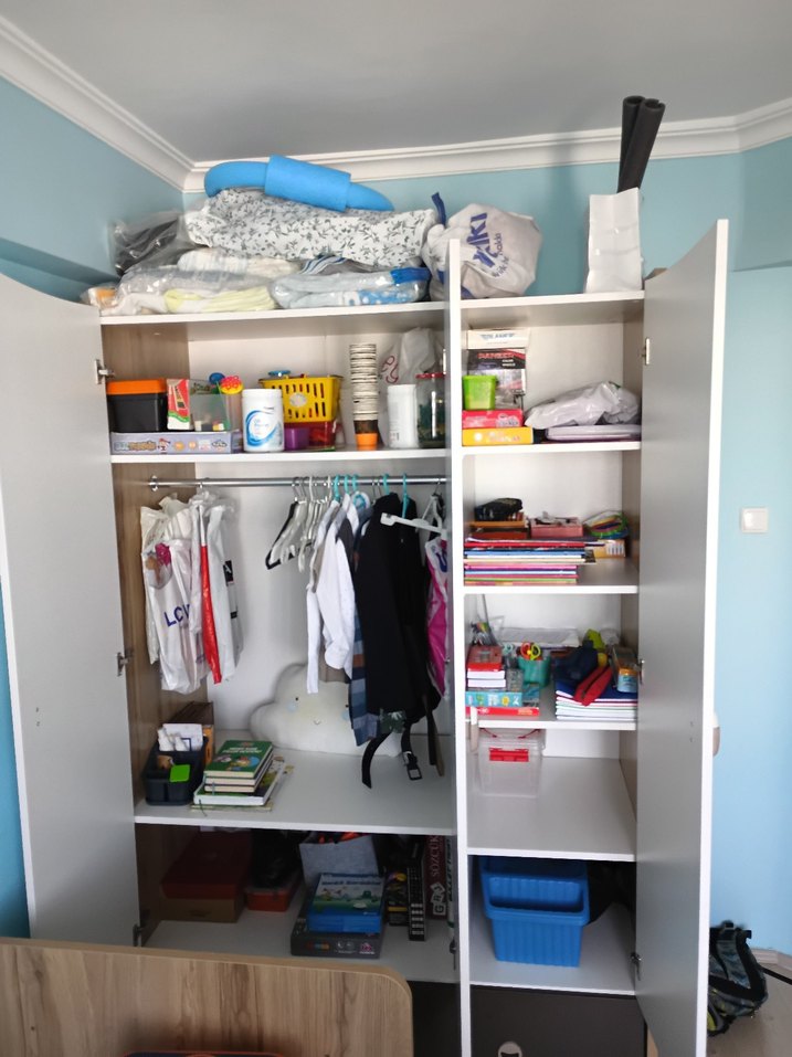 Resimlerde görüldüğü gibidir. Yan tarafında küçük bir kitaplık var kendimiz monte ettik. Sadece Bursa içi elden teslim edilecektir!