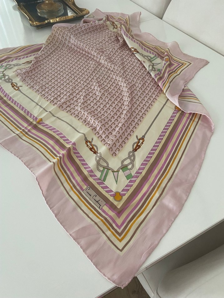 Pierre Cardin kadın fular, ipeksi kumaş ve pastel pembe tonlarıyla bohem tarzda, Paris esintili desenlere sahip. ORJİNAL SATEN İPEK EŞARP