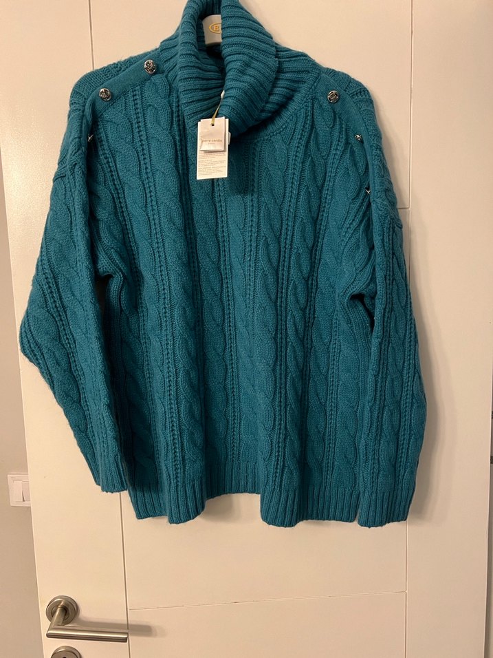 Petrol rengi,balıkçı yakalı ve uzun kollu örme kazak. Rahat ve normal kesim, desensiz tasarım günlük kullanıma uygun.