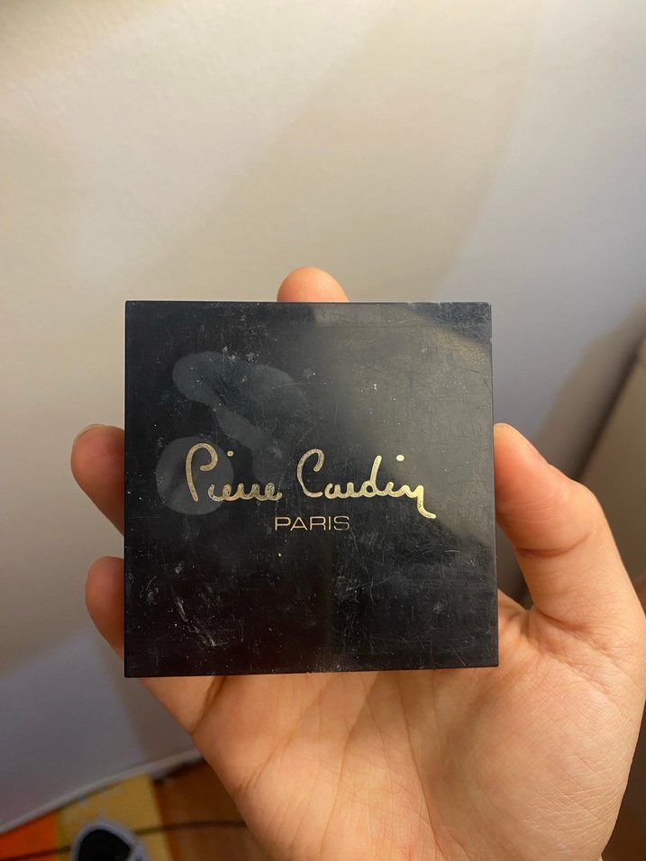Pierre Cardin pudra kutusu, üzerinde marka adı ve 'PARIS' yazısı bulunur. orta tonlu bir kozmetik ürünüdür çok kullanılmadı.orjinaI