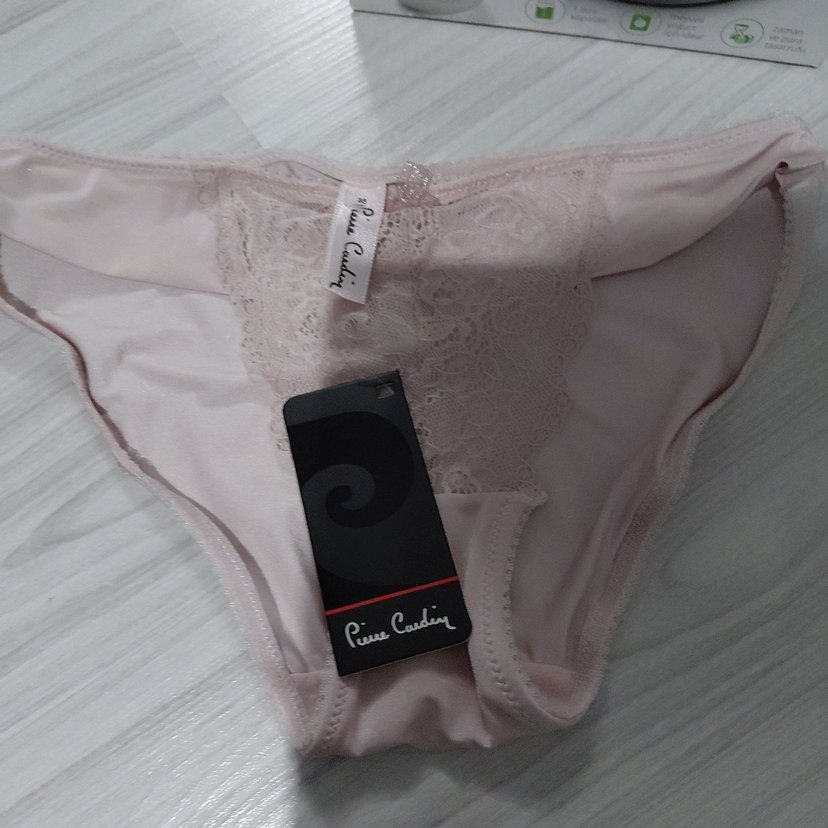 Pierre Cardin markalı, pastel pembe renkte, dantel detaylı mini kadın iç çamaşırı, Paris tarzı ile counterculture esintisi taşıyor.
