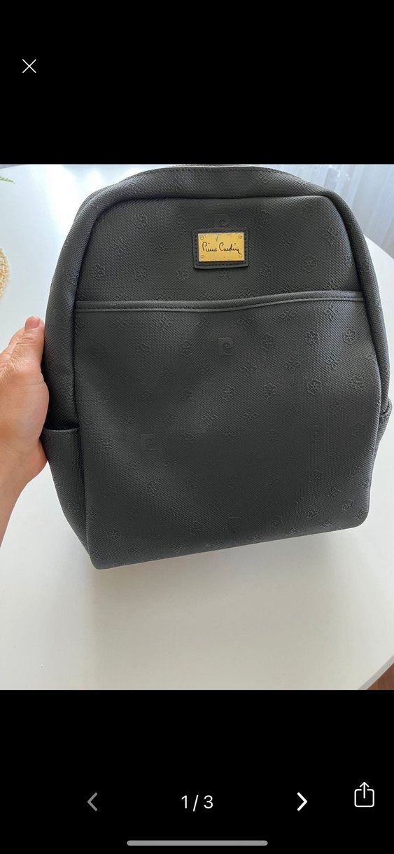 Pierre Cardin siyah deri sırt çantası, minimal desenli ve tokalı detaylara sahip, günlük şehir stili için uygun.