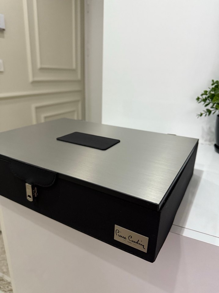 Pierre Cardin siyah gövde ve gri metalik kapaklı düzenleyici, eşyalarınızı güvenle ve şık şekilde saklamanızı sağlar.