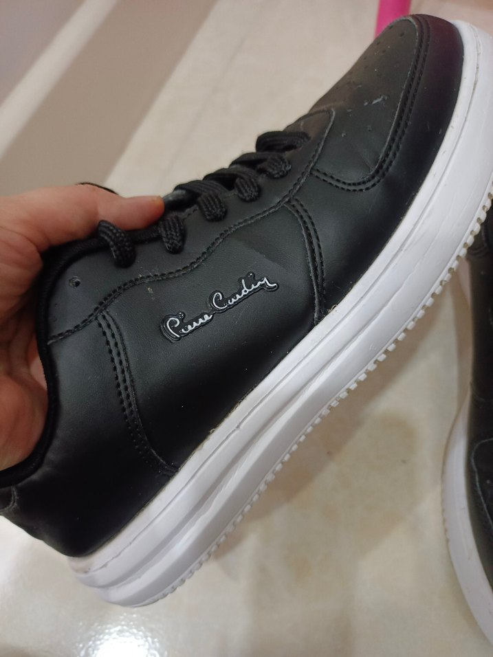 Pierre Cardin marka siyah renkli, baskılı detaylı ve beyaz tabanlı stiletto topuklu kadın sneaker. Günlük kullanım için uygun, kauçuk malzemeden yapılmıştır.