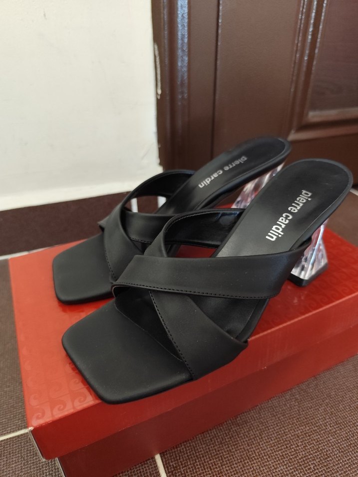 Pierre Cardin markalı siyah kadın topuklu terlik