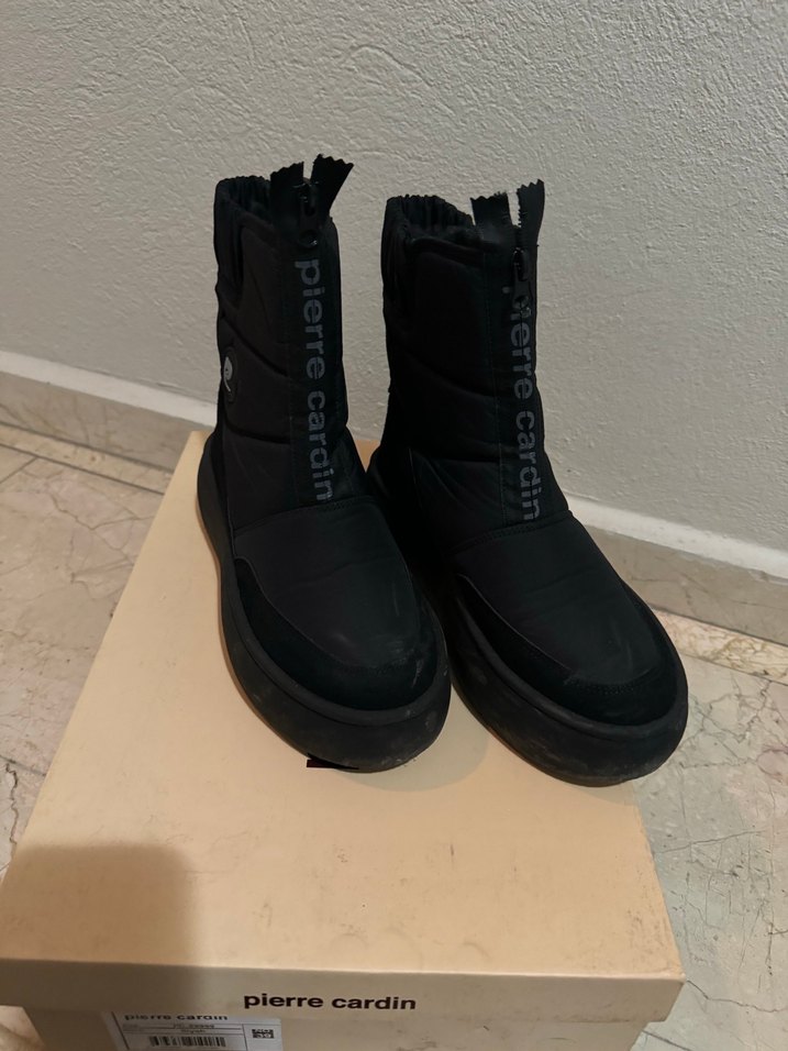 Pierre Cardin marka siyah kauçuk kadın botlar, platform topuklu ve cırt cırtlı kapama ile sokak stiline uygun günlük kullanıma uygundur. Sadece 1 defa giyildi yepyeni