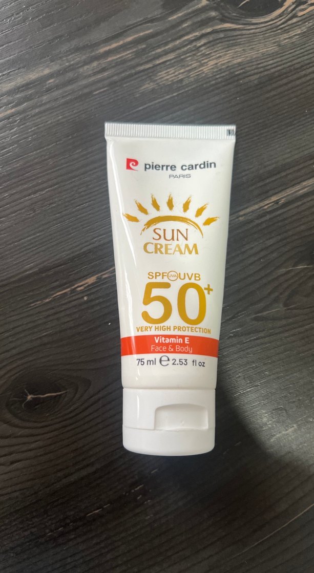 Pierre Cardin SPF 50+ güneş kremi, çok yüksek UVA ve UVB koruması sağlar. E vitamini ile zenginleştirilmiş olup yüz ve vücut için uygundur. 75 ml tüpte sunulur. ☀️