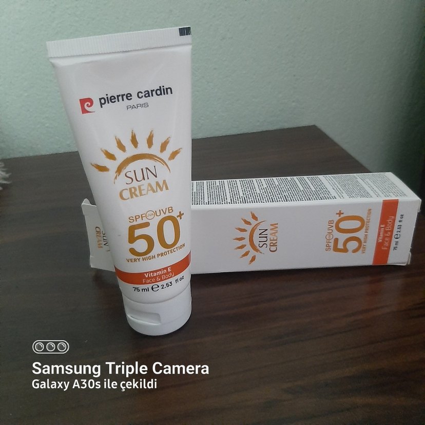 Pierre Cardin güneş kremi SPF 50+ çok yüksek koruma sağlar ve vitamin E içerir. 75 ml tüpte, yüz ve vücut için uygundur. ☀️