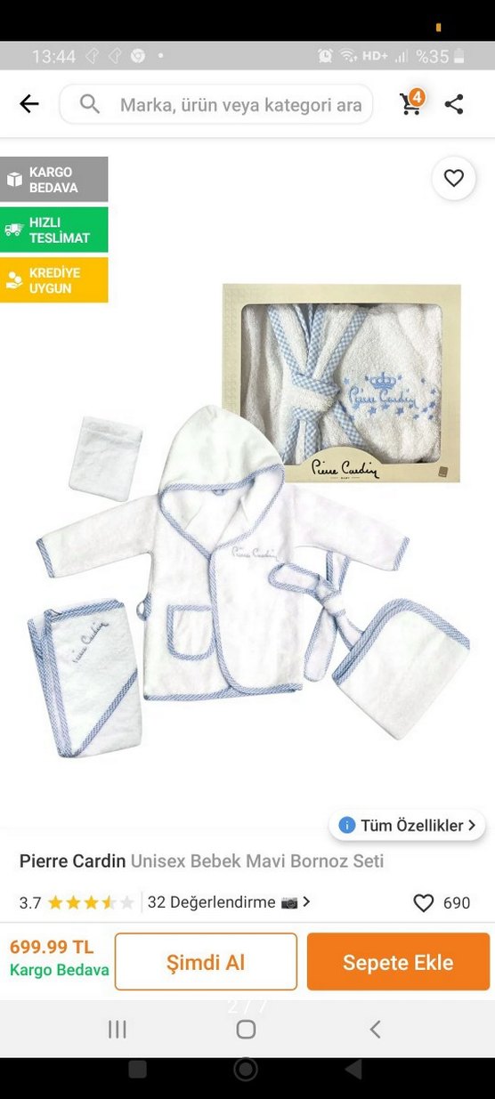 Pierre Cardin unisex bebek mavi işlemeli detaylı beyaz bornoz seti, kapüşonlu, kemerli ve uyumlu havlular içerir. Yumuşak ve rahat.