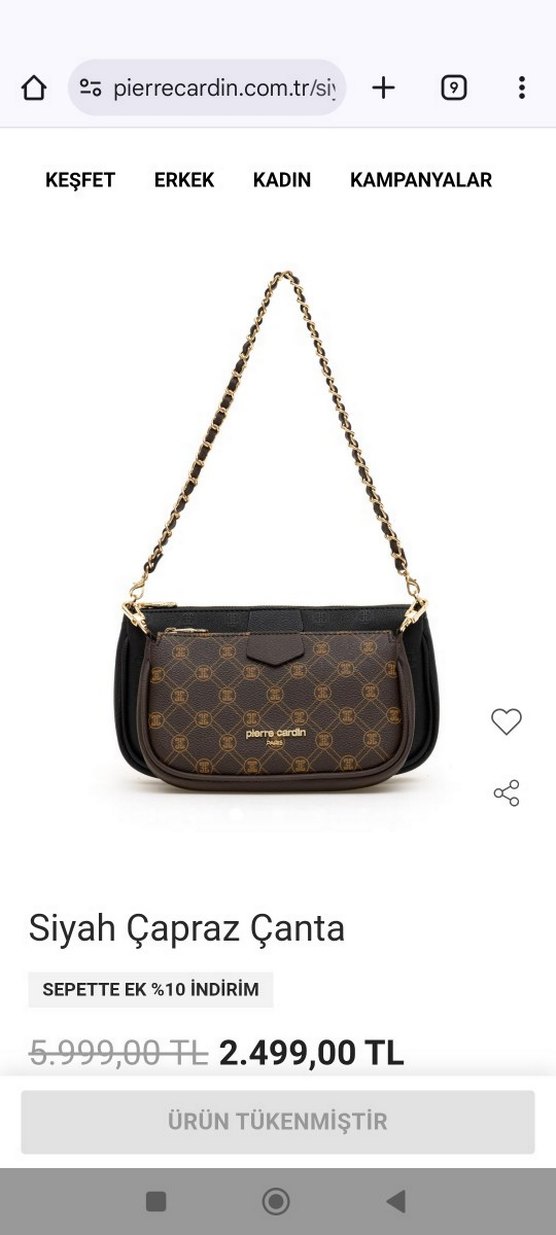 Pierre Cardin Kahverengi çapraz çanta, zincir detaylı askıya sahip. bir kere kullandım küçük geldiği için satıyorum