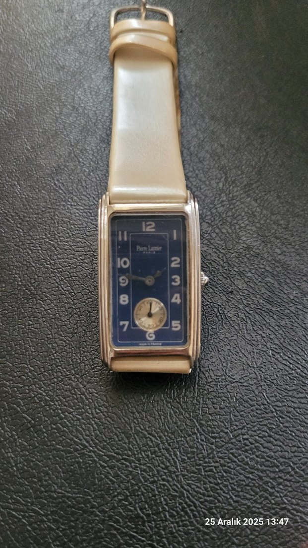 Dikdörtgen lacivert kadran, vintage kadın saati.⌚Pierre lannier, orijinal Fransız marka. Makine aksamı orijinal İsviçre üretimi, mükemmel vintage bir saattir. Orijinal kayışı da lacivertti eskidiği için bu kayış takılmıştı, kayışı eski sadece kayış değişebilir. Camında ve çerçevesinde ince çizikler mevcut ama kesinlikle rahatsız edici değil, çok şık bi saattir. Saatlerim arasında en çok severek kullandığımdır. Makine aksamı günümüz çin üretimi saatlerin çok üstünde bir kaliteye sahiptir.