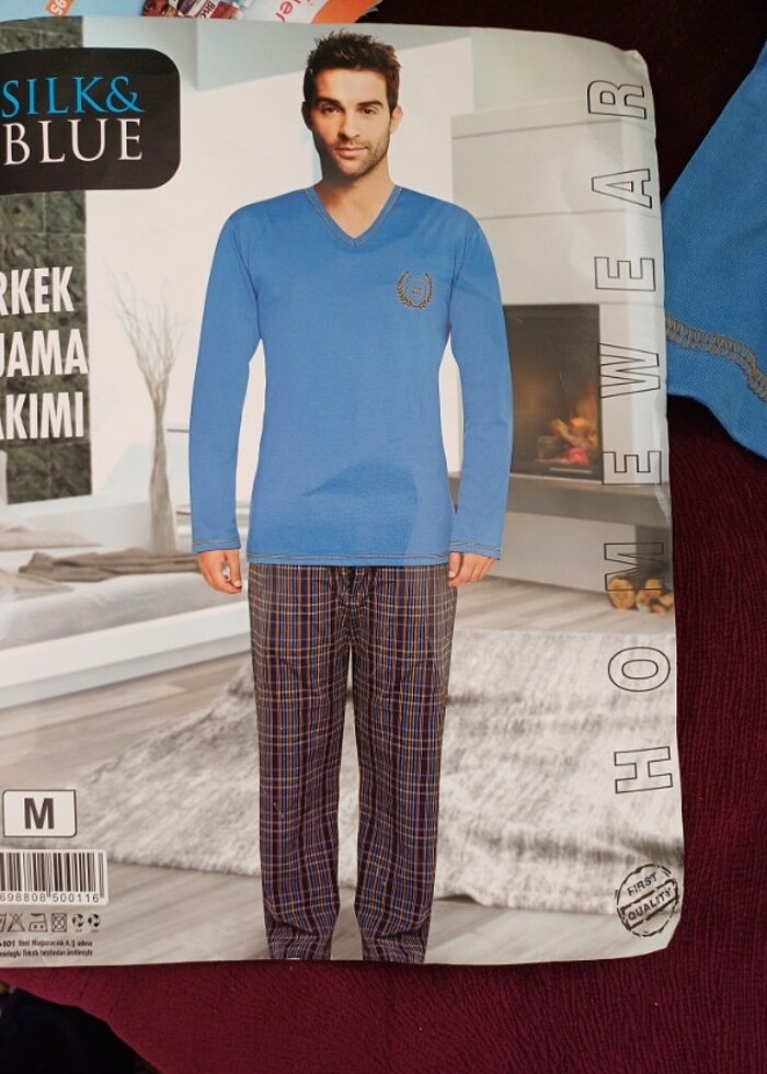 Erkek pijama takimi alti ekose. Paketli