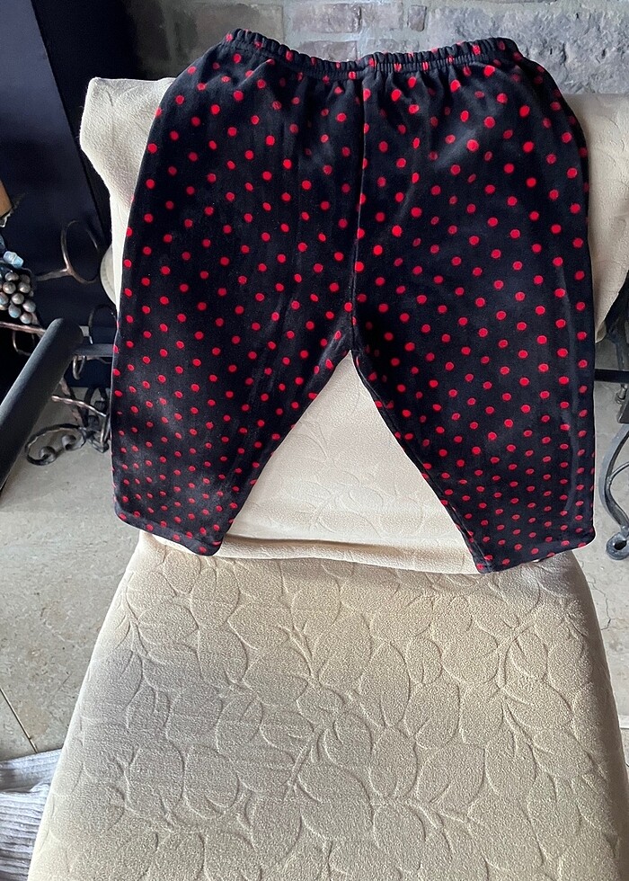 Lacivert üzerine kırmızı benekli 1 yaş kadife beli lastikli pijama altı