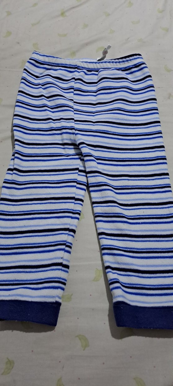 Renkli mavi çizgili, lastikli bel ve dar kesime sahip erkek çocuk pijama yumuşak ve sıcak kumaştan üretilmiştir. Sokak stiline uygun. 2.el kullanilmis