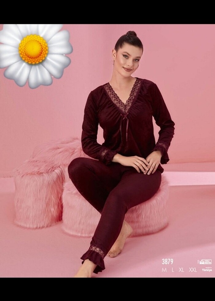 Kadife dantel detaylı bayan pijama takım