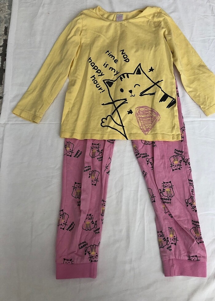 Kedili temiz pijama takımı. 6-7 yaş