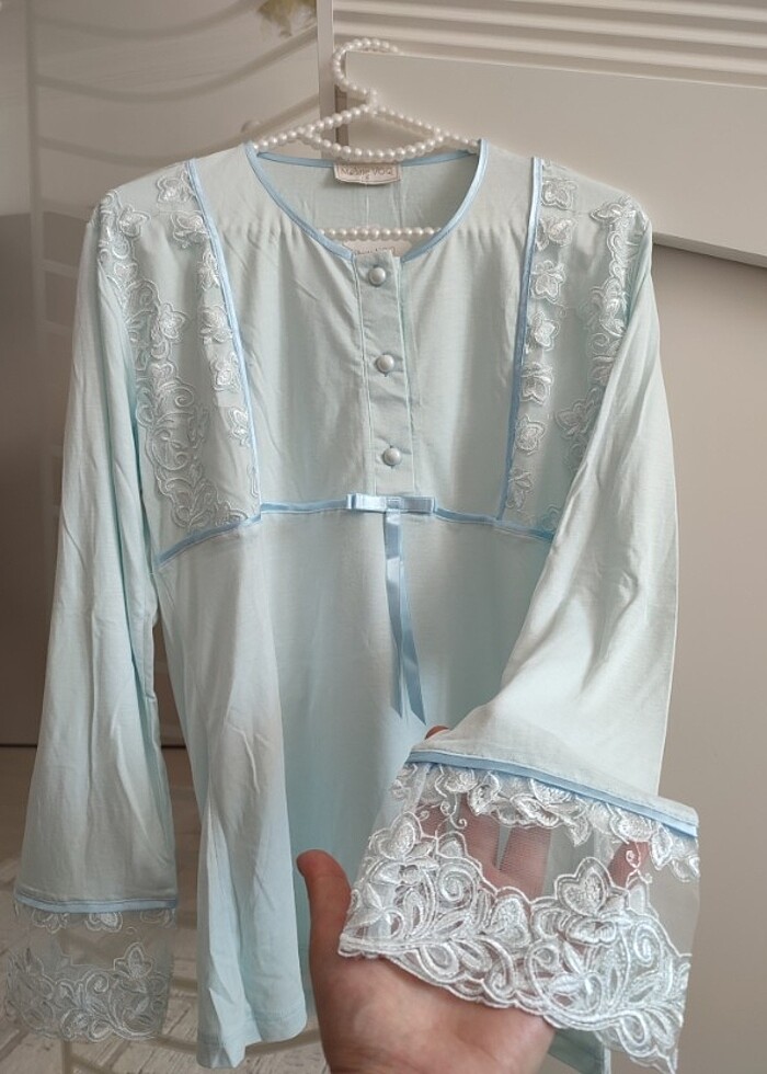 Hiç kullanılmamış etiketi üzerinde rengi buz mavisi S bedene uyumludur.