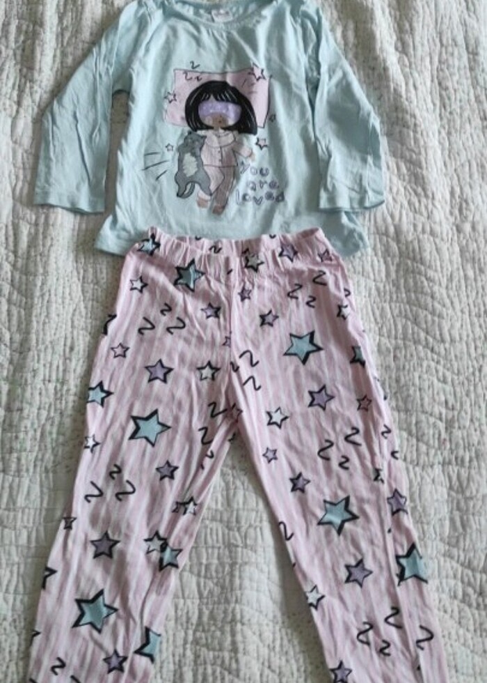 Neredeyse sıfır pijama takımı İki kez giyildi olmadı üzerine 4-5 yaş ama 3 yaş 3 buçuk yaş gibi de olur ustu