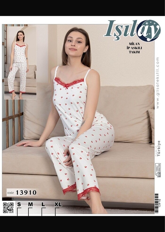 Işılay Milan kumaş ip askılı pijama takımı Bedenleri mevcuttur iletişime geçebilirsiniz