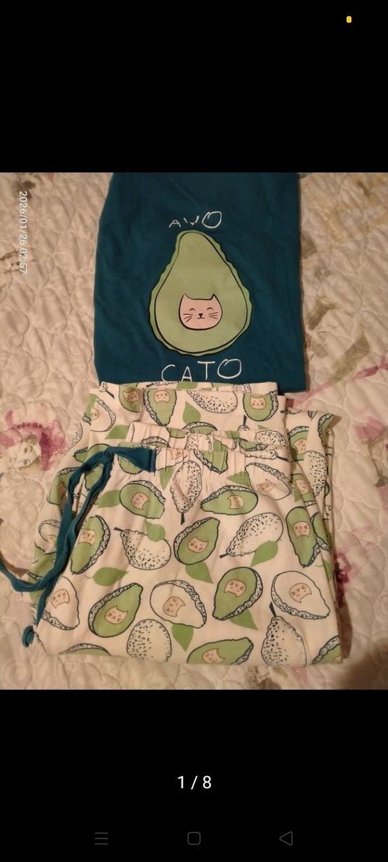 . Avokado ve kedi desenleriyle süslenmiştir.bir iki minik delik var bilginiz olsun fiyatı uygun belirledim