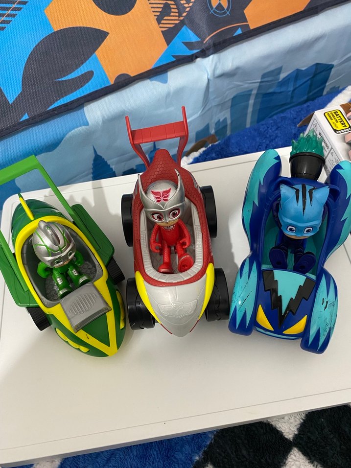 Canlı renklerde oyuncak arabalar içinde oturan figürler. Her figürün kendine özgü kostümü ve kaskı var. Hiçbir sorunları yoktur toyz shoptan alınmış Orjinal ürünlerdir
