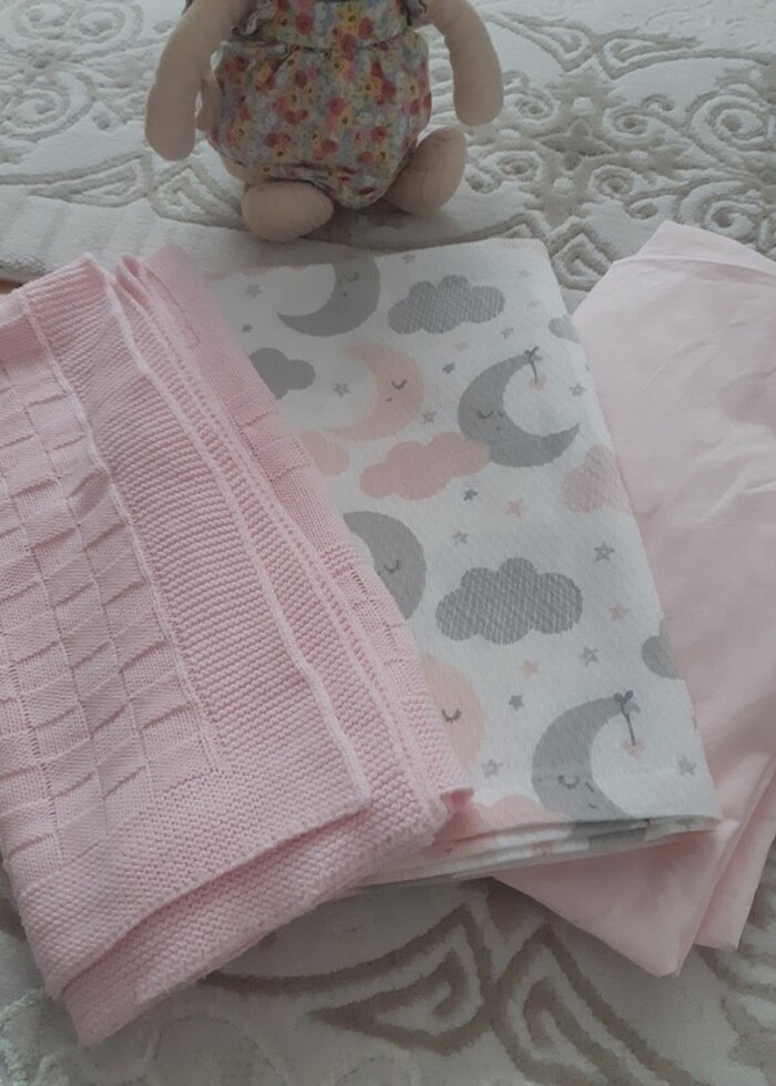 Pike ve lastikli çarşaf hiç kullanılmadı hediye gelmişti. Triko battaniye sayılı kullanılmıştır malum bebekler çabuk büyüyor kullanma fırsatımız olmadı. Hepsinin toplu fiyatıdır. Tertemiz lekesiz defosuz ürünler.