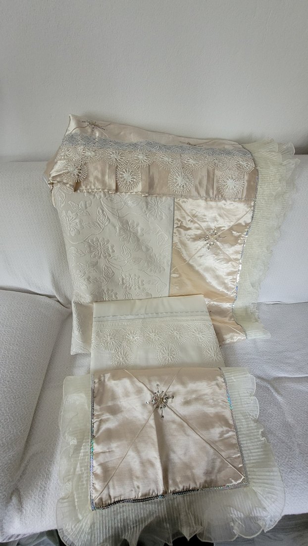 2 yastık 1 çarşaf 1 pike 2 sus yastığı mevcuttur