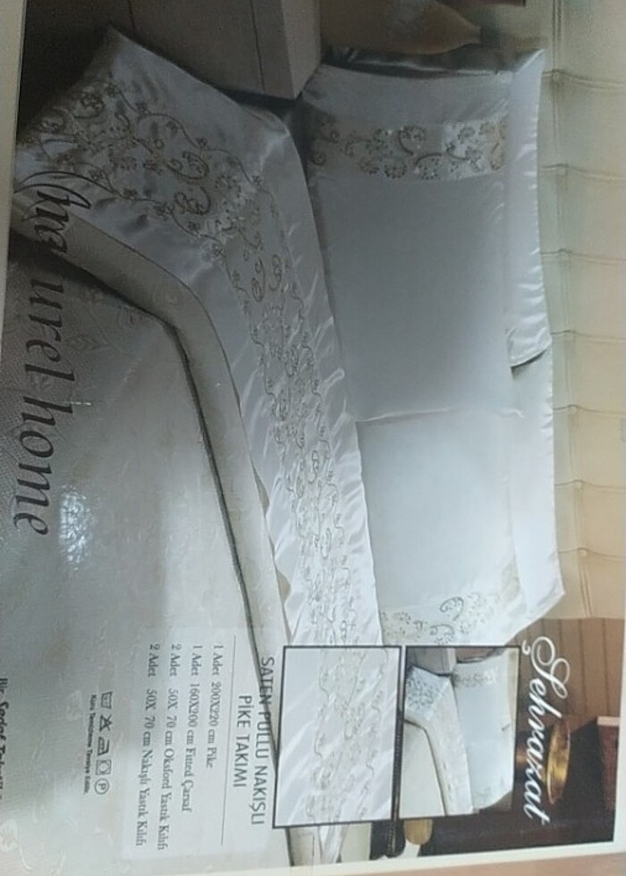 Saten pullu pike takımı 1Adet 200X220 pike 1Adet 160X200 çarşaf 2Adet 50X70 yastık 2Adet50X70 yastık pullu
